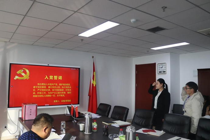 會(huì)議首先嚴(yán)格按照發(fā)展黨員程序,對(duì)預(yù)備黨員吳楠同志轉(zhuǎn)為中共正式黨員事宜和吸收郭慧超同志為中共預(yù)備黨員事宜分別進(jìn)行了討論和表決,大會(huì)一致通過(guò)吳楠同志轉(zhuǎn)為中共正式黨員、郭慧超同志為中共預(yù)備黨員的決議。兩位同志面向黨旗,進(jìn)行了入黨宣誓。